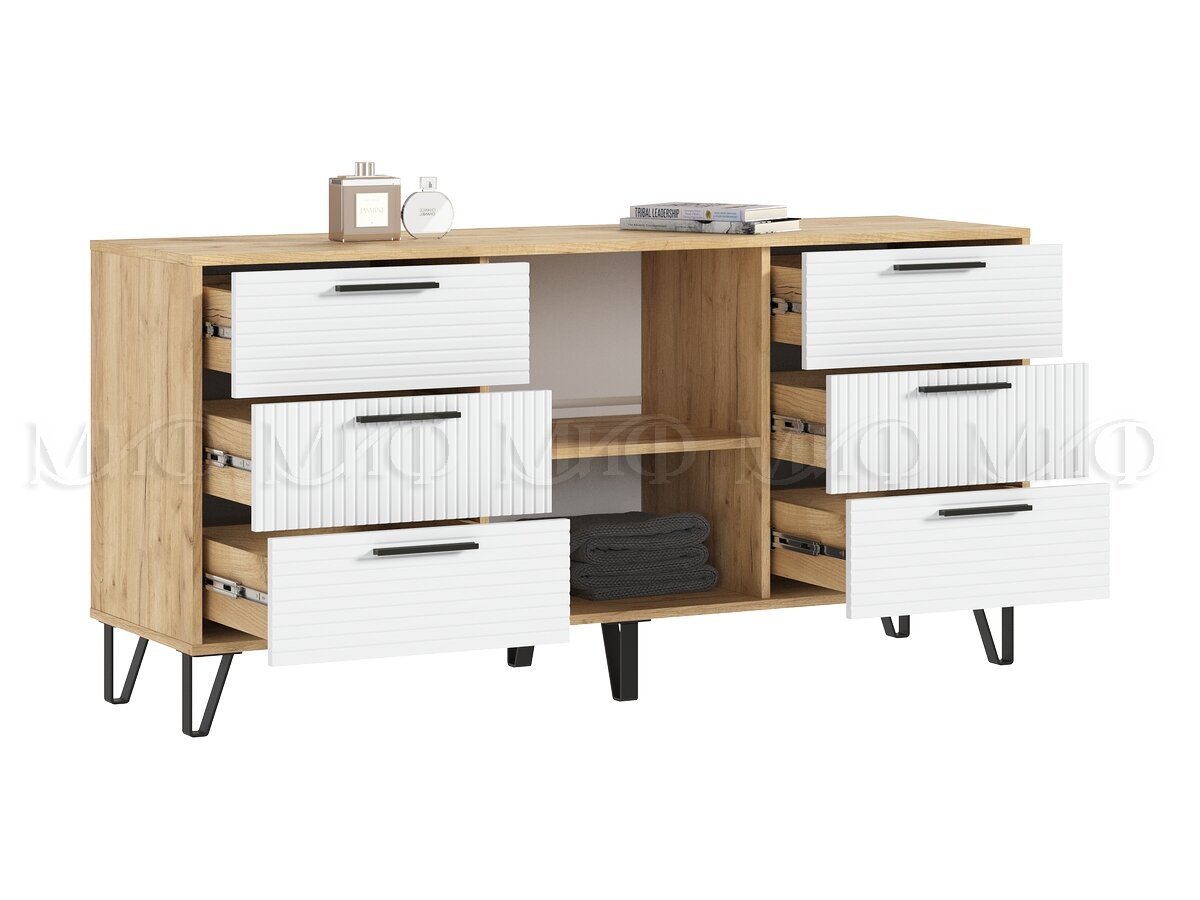 - Комод (1500) Флэш Браш Вайт, Дуб Крафт