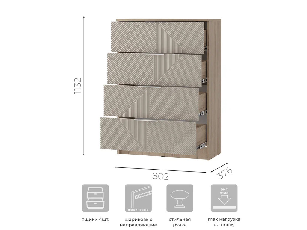 Максимальная нагрузка на столешницу - 10 кг, на ящик - 5 кг.