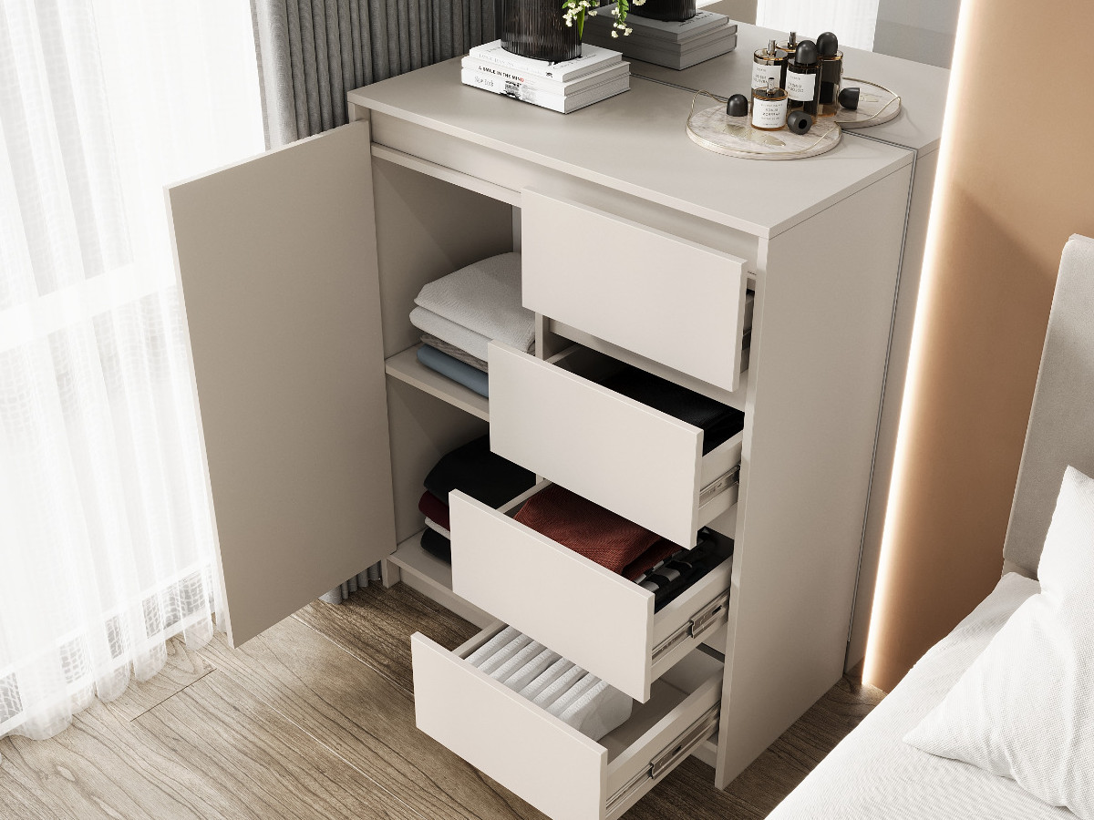 - Створка комода изготовлена из плиты МДФ 16мм и облицована пленкой ПВХ. Для открывания