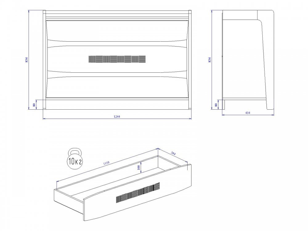 Размер: 1244*434*834 мм