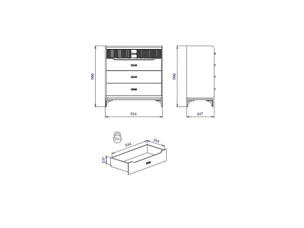 Макс.нагрузка на ящик (кг): 10