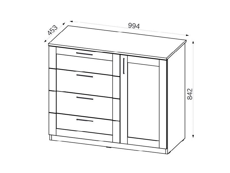 - Комод с 4-мя ящиками и дверкой СГ Классика