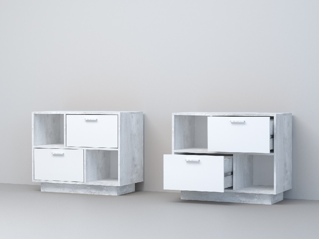 - Тумба Эго Т-1 2 ящика бетон светлый/белый глянец на цоколе