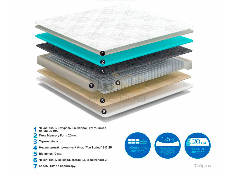 - Матрас Sabrina No Flip ширина 900