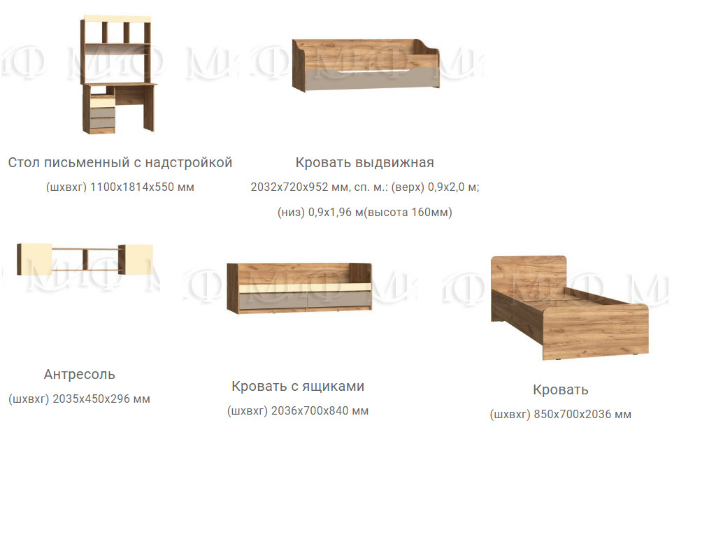 Цена за комплект: Кровать с ящиками, Стеллаж с ящиками, Пенал, Шкаф,Пенал закрытый