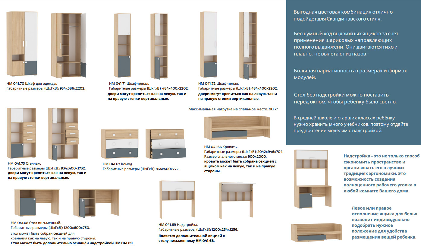 - НМ 041.66 Кровать Ш 2042 X Г 946 X В 704 мм ( 66,2 кг; 0,142 м3)