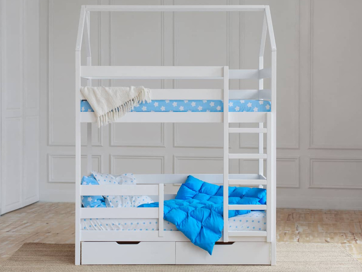 - Двухъярусная кровать-домик белый 80х160 см с ящиками