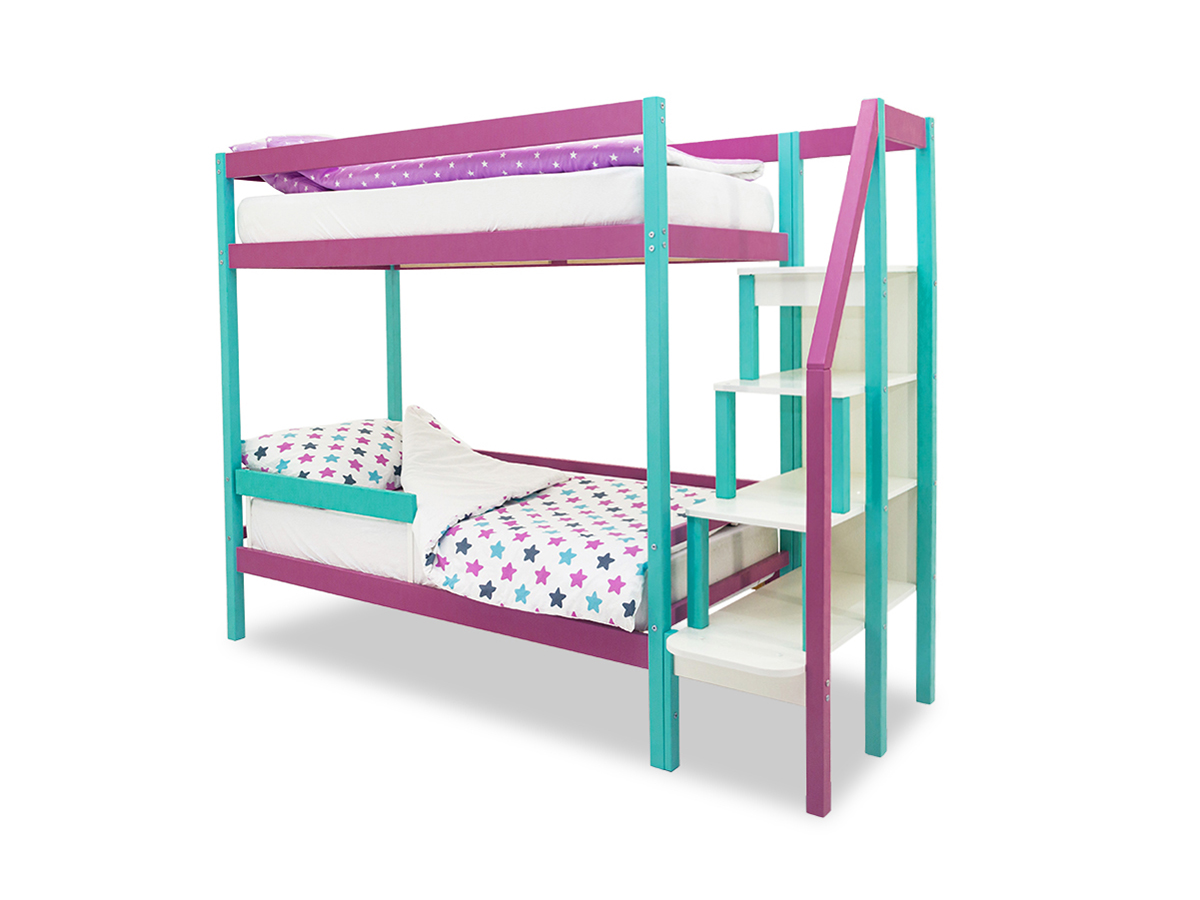 Двухъярусная кровать Svogen с бортиком мятный-лаванда