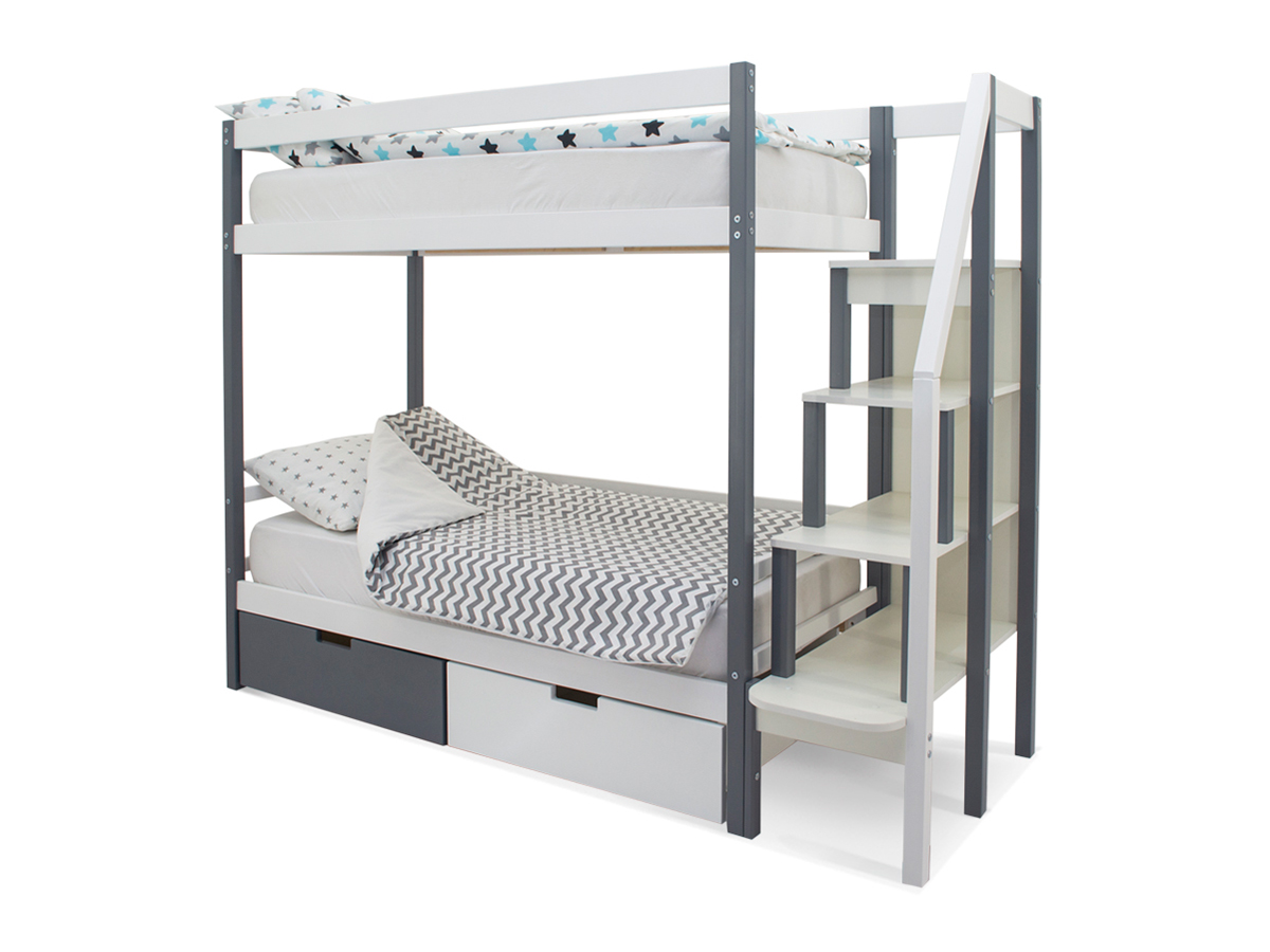 Двухъярусная кровать Svogen с ящиками графит-белый