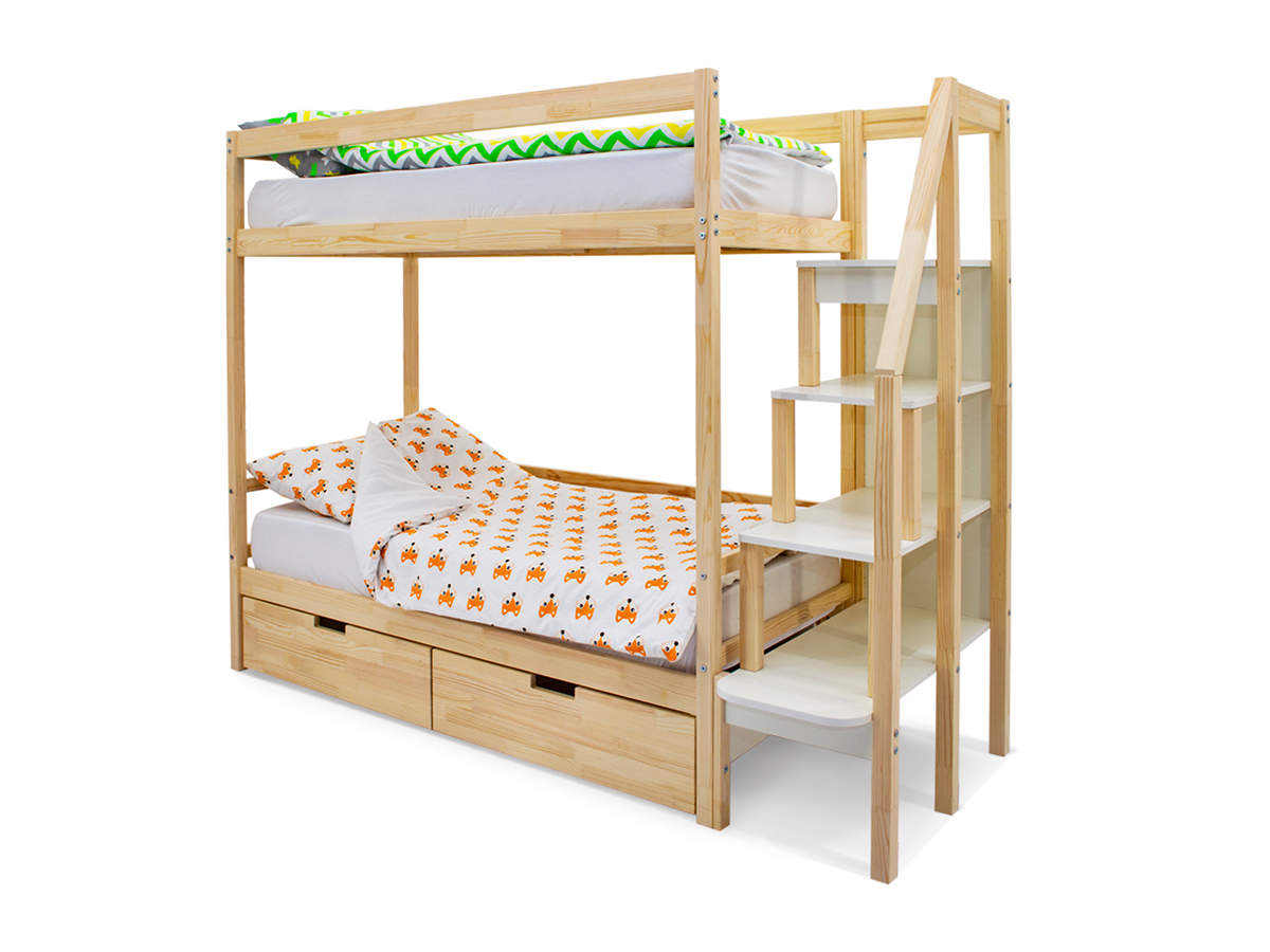 Двухъярусная кровать Svogen с ящиками натура без покрытия