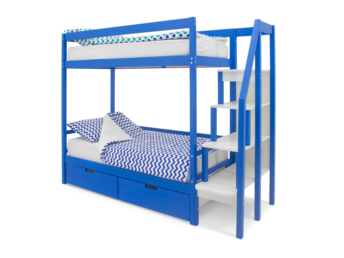 Двухъярусная кровать Svogen с ящиками синий