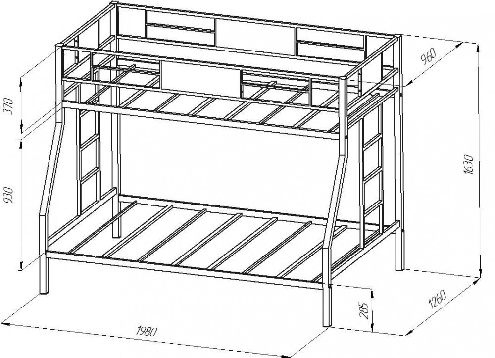 ширина нижнего спального места 1200х1900 мм