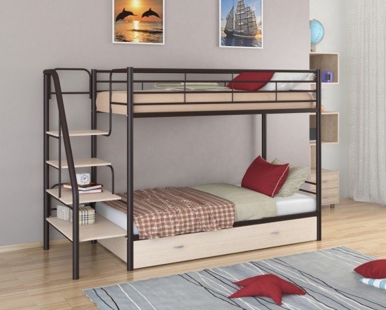 - Двухъярусная кровать Толедо Я коричневый дуб молочный