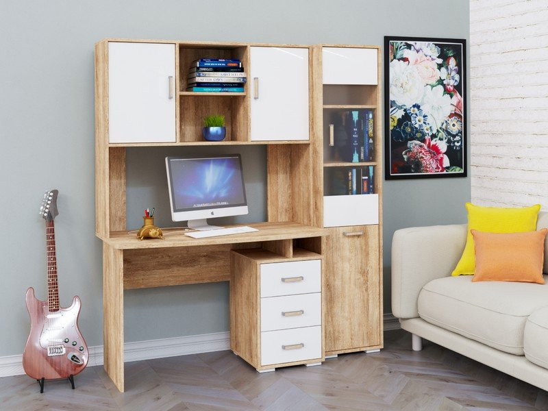 Компьютерный стол КЛ-1.2 с пеналом Дуб баррик / белый жемчуг