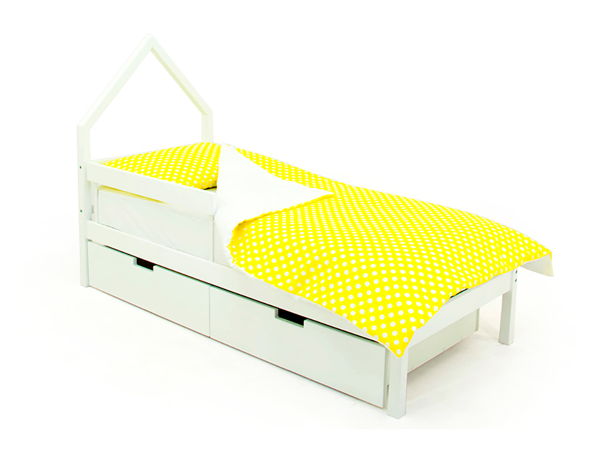 - Кровать-домик мини Svogen с ящиками и бортиком белый