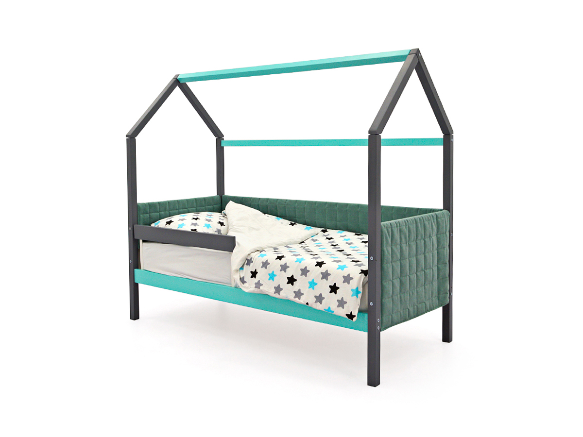 - Кровать-домик мягкий Svogen с бортиком графит-мятный