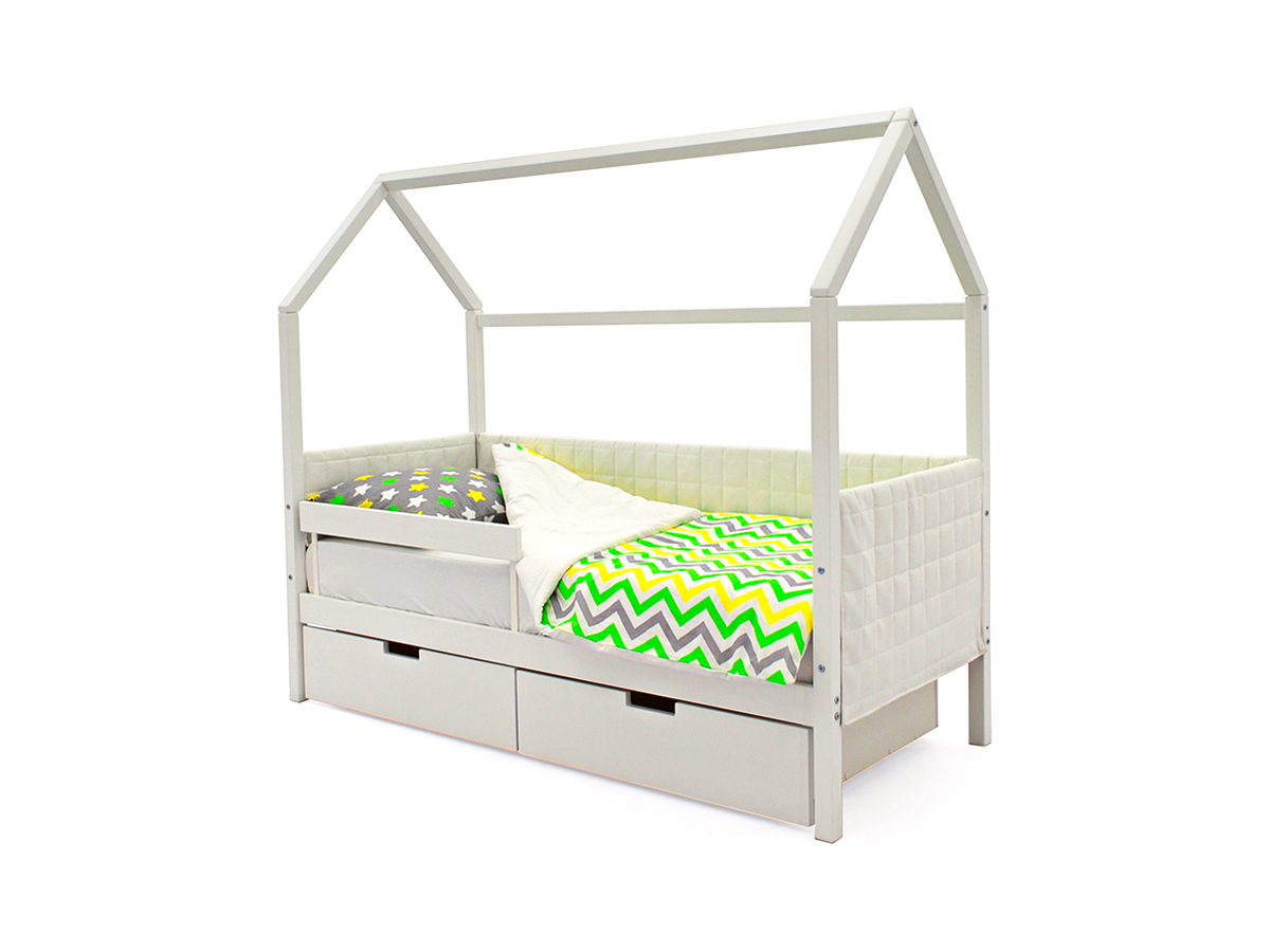 - Кровать-домик мягкий Svogen с ящиками и бортиком белый