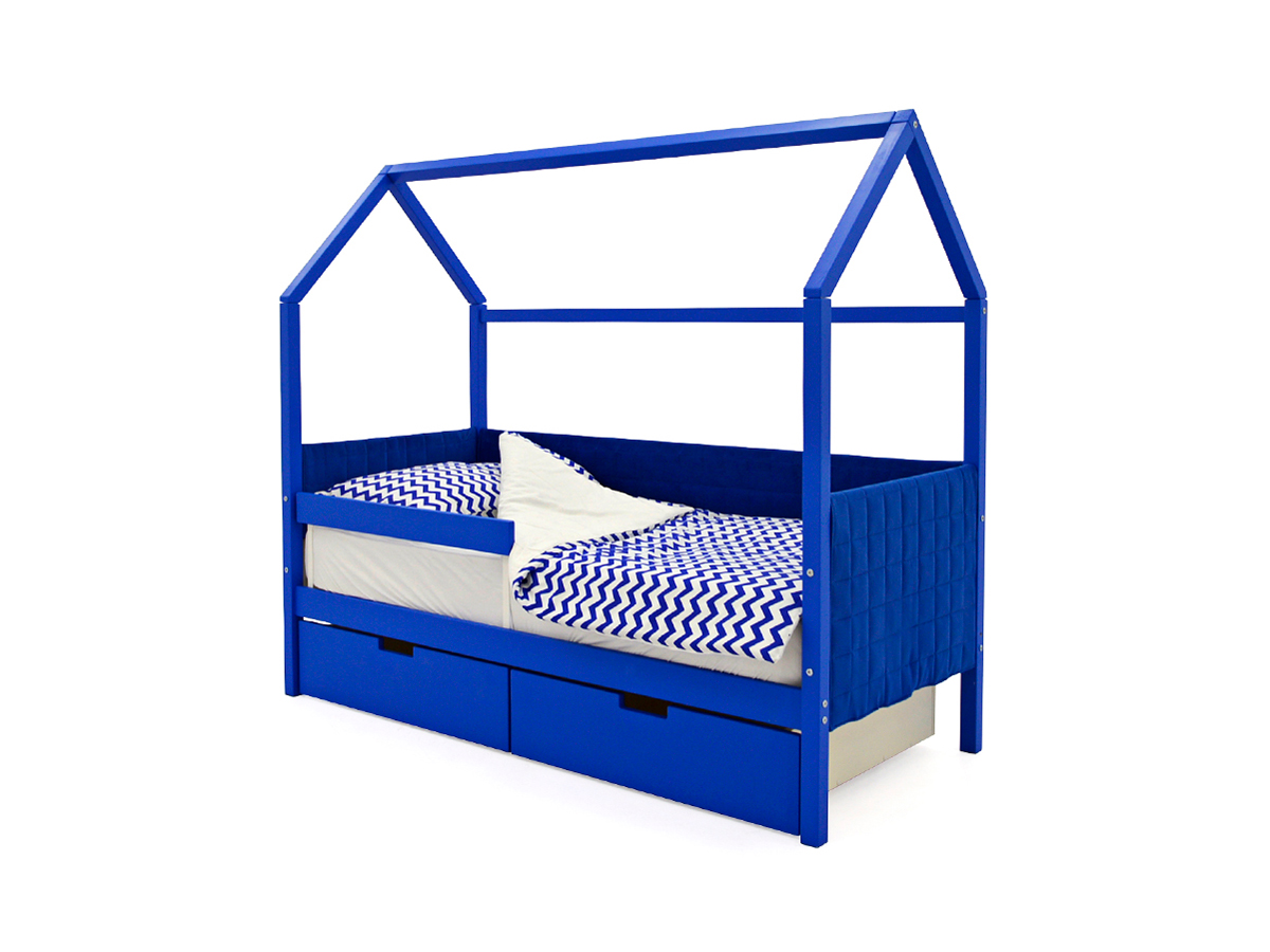 Кровать-домик мягкий Svogen с ящиками и бортиком синий
