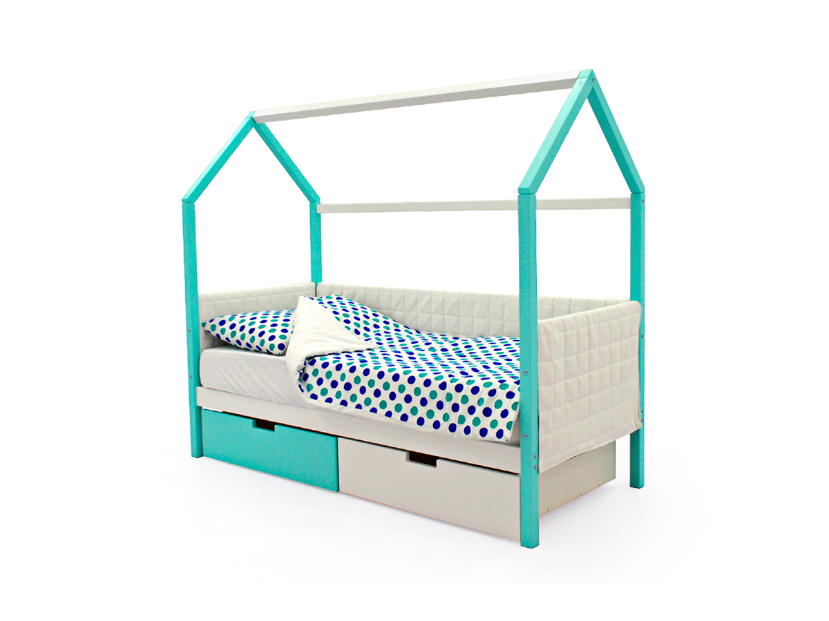 - Кровать-домик мягкий Svogen с ящиками мятно-белый