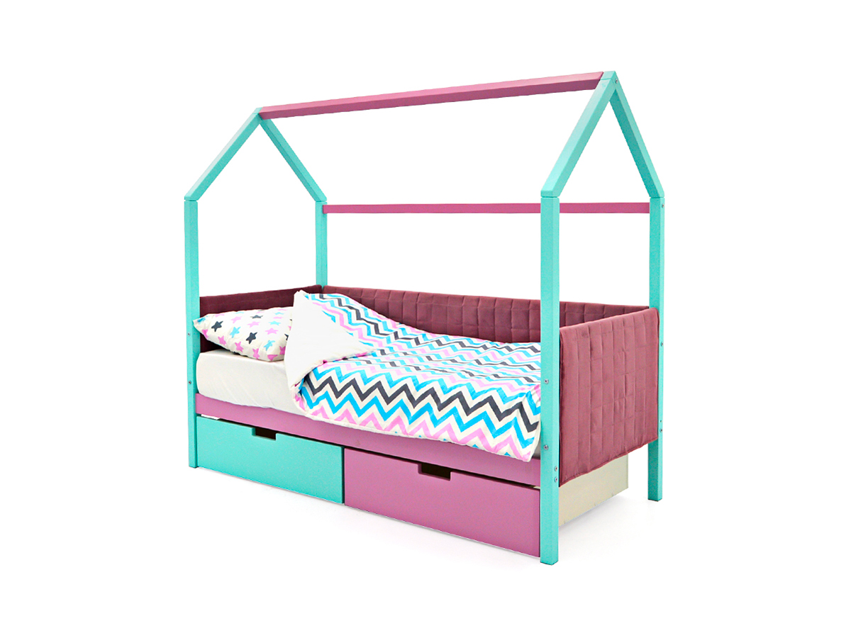 - Кровать-домик мягкий Svogen с ящиками мятный-лаванда