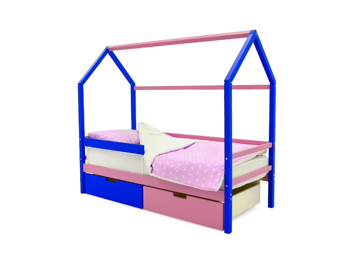 - Кровать-домик Svogen с ящиками и бортиком синий-лаванда