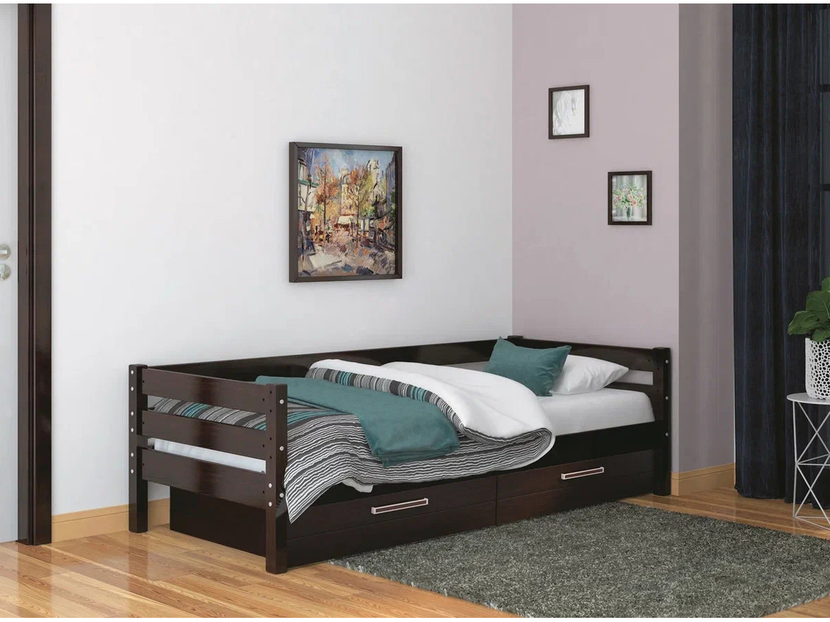 - Кровать Глория с ящиками Орех темный