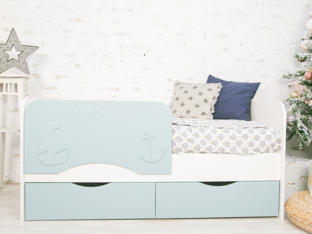 - Кровать Кораблик белый/голубой софт