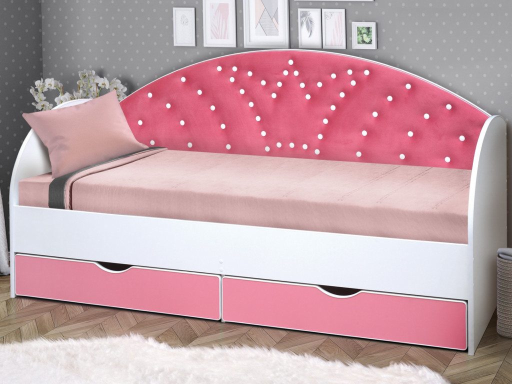Кровать с продольной мягкой спинкой Корона №1 800х1600 мм розовая