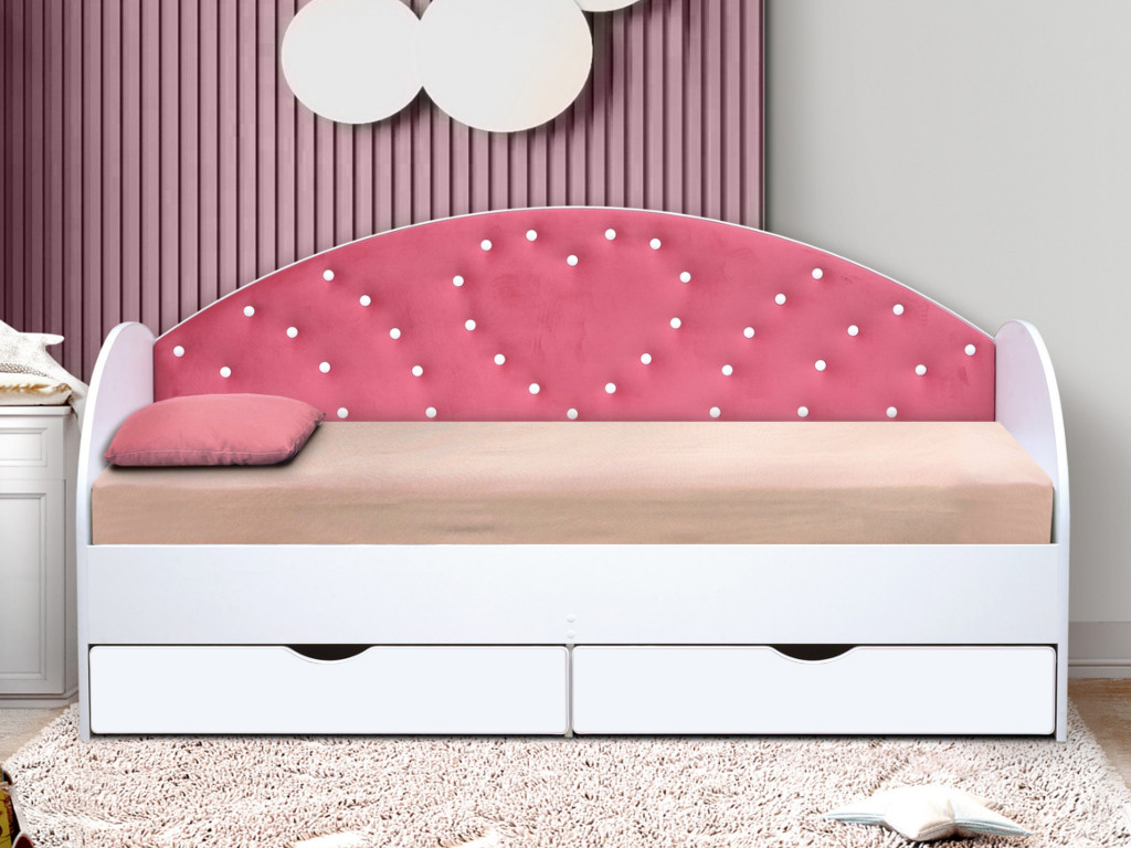 - Кровать с продольной мягкой спинкой Сердце №1 800х1900 мм белая
