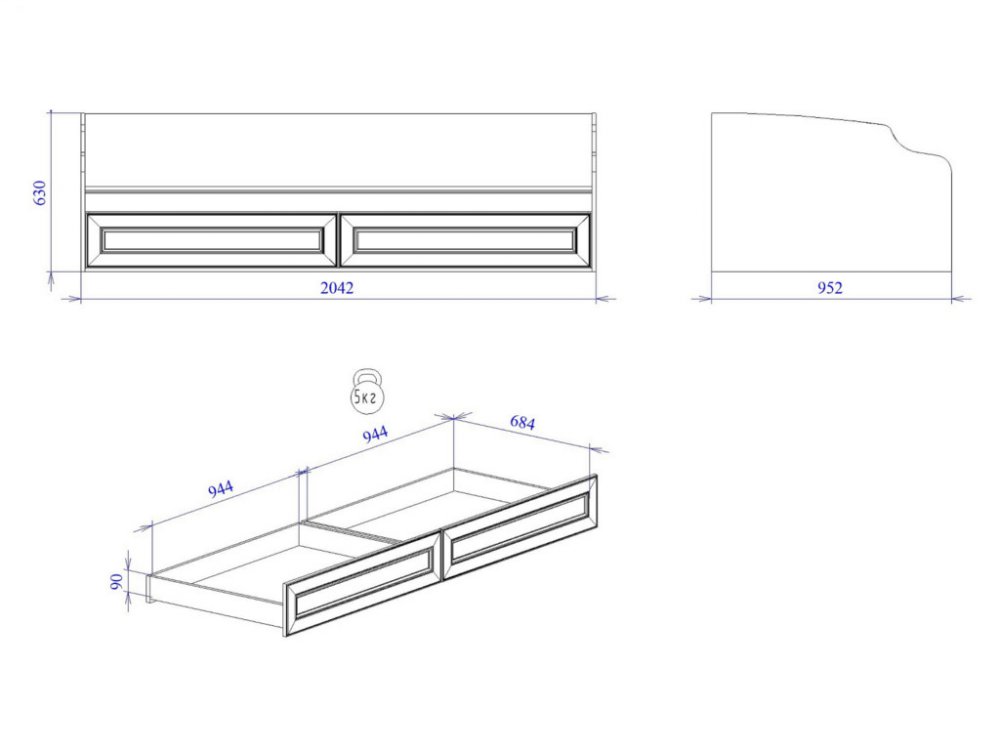 Размер: 2042*952*630 мм