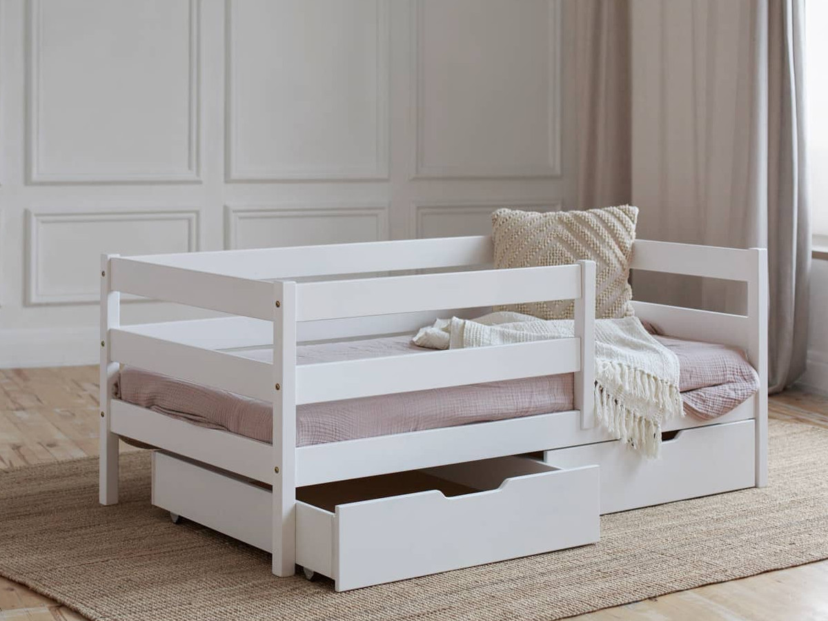 - Кровать-софа детская с бортиками белый 80х190 см с ящиками