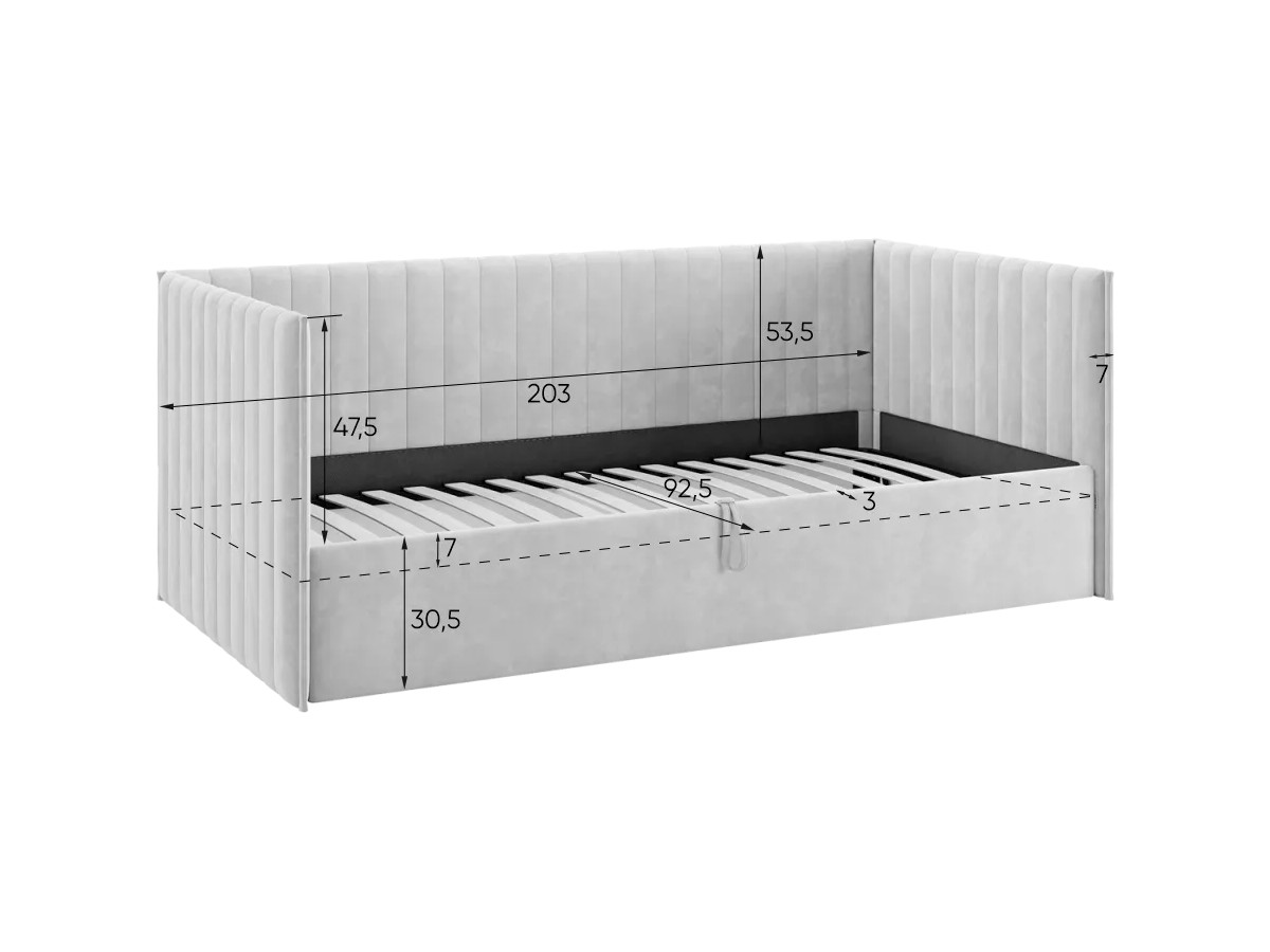Дополнительно можно приобрести наматрасник в цвет обивки и мягкий ограничитель.