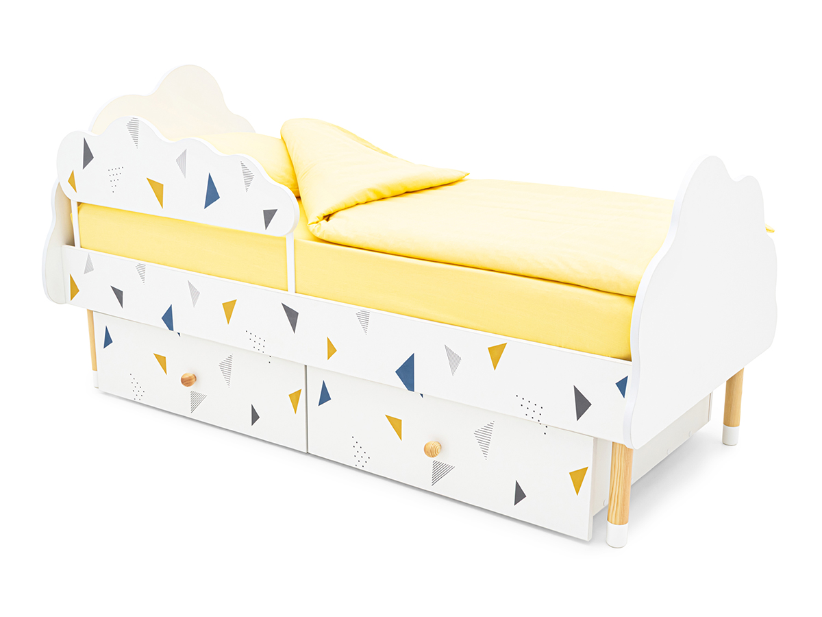 - Кровать Stumpa Облако бортик и ящики рисунок Треугольники желтый, синий