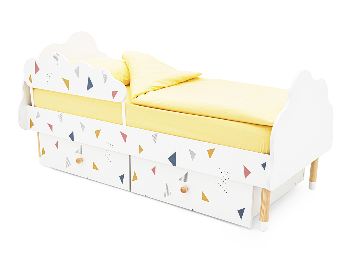 - Кровать Stumpa Облако бортик, ящики рисунок Треугольники желтый,синий,розовый