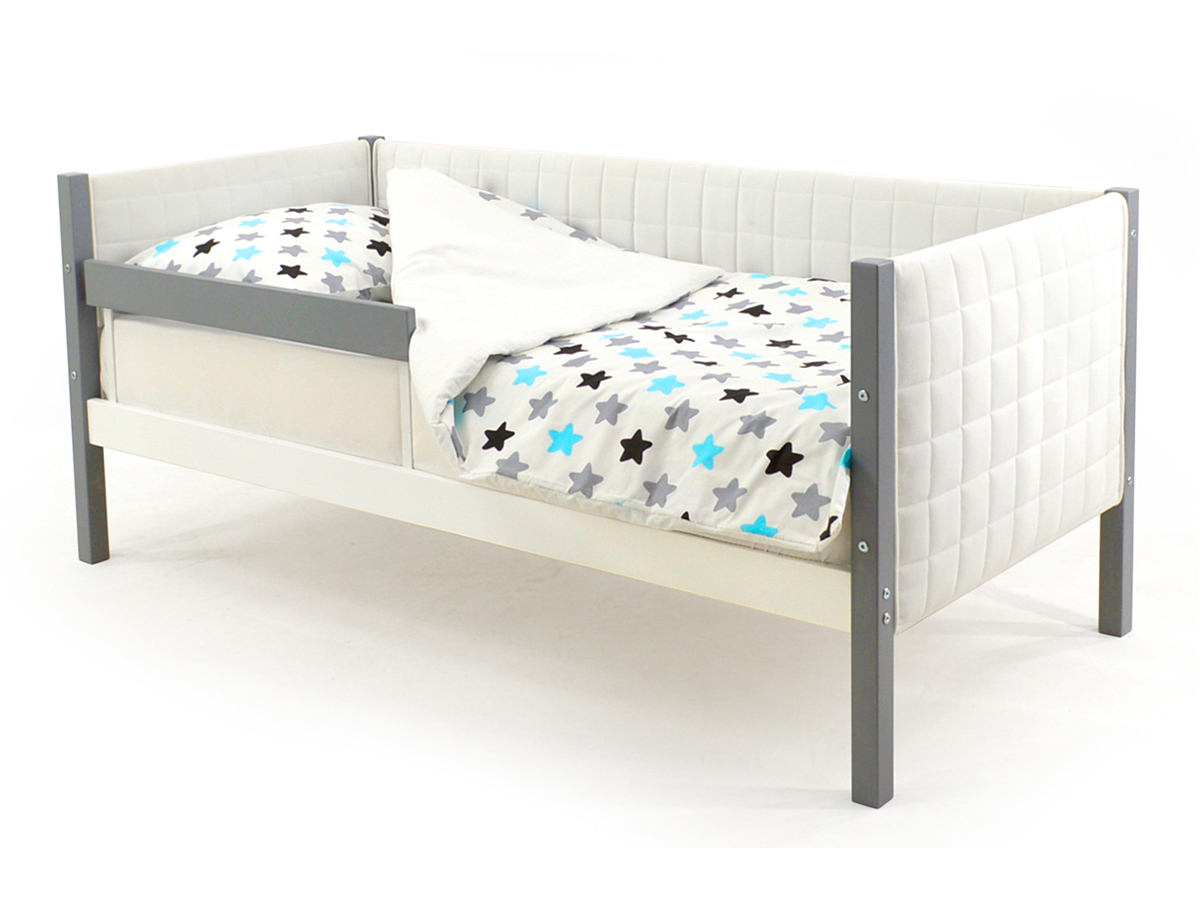 Кровать-тахта мягкая Svogen с бортиком графит-белый