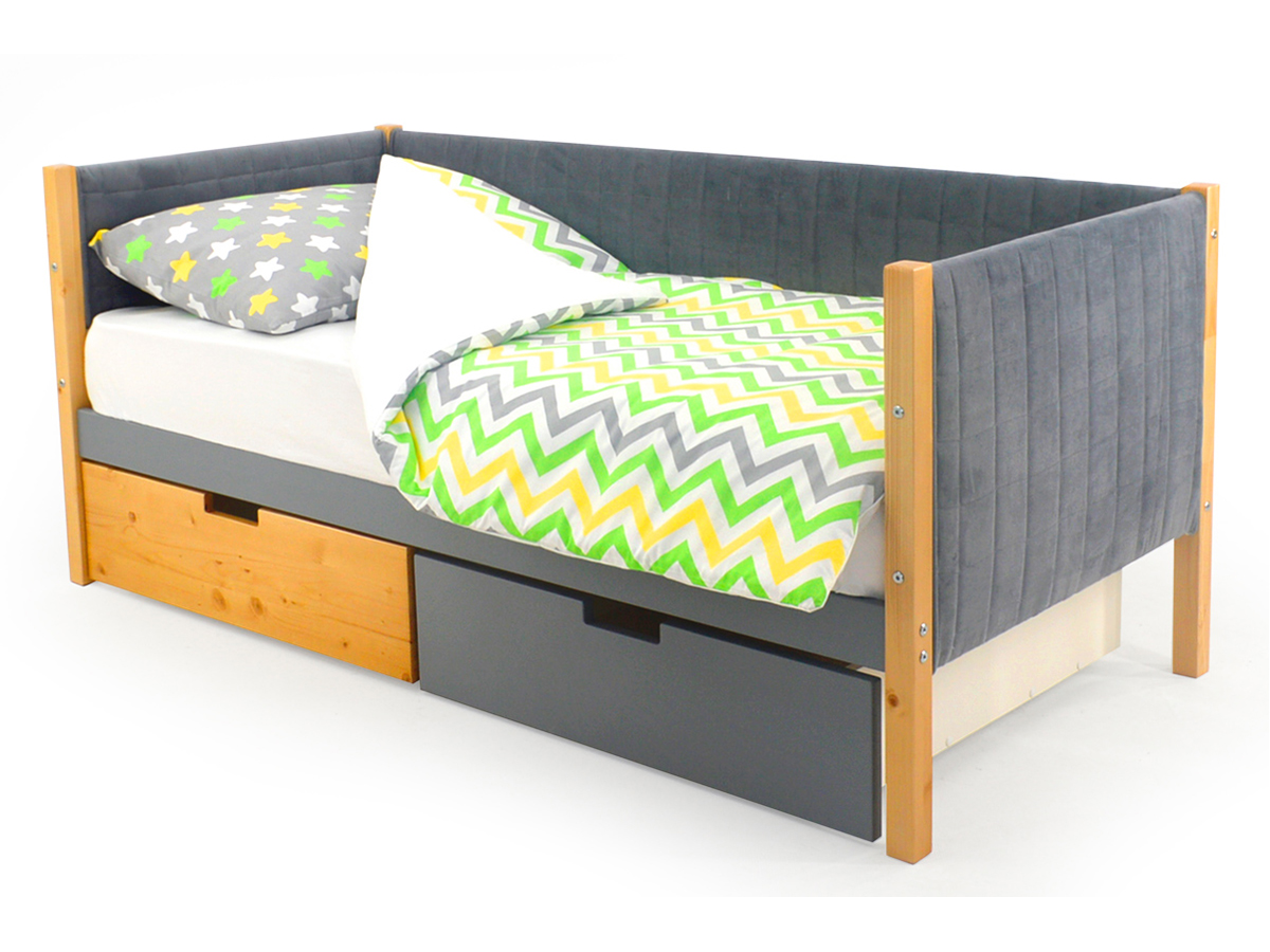 - Кровать-тахта мягкая Svogen с ящиками дерево-графит
