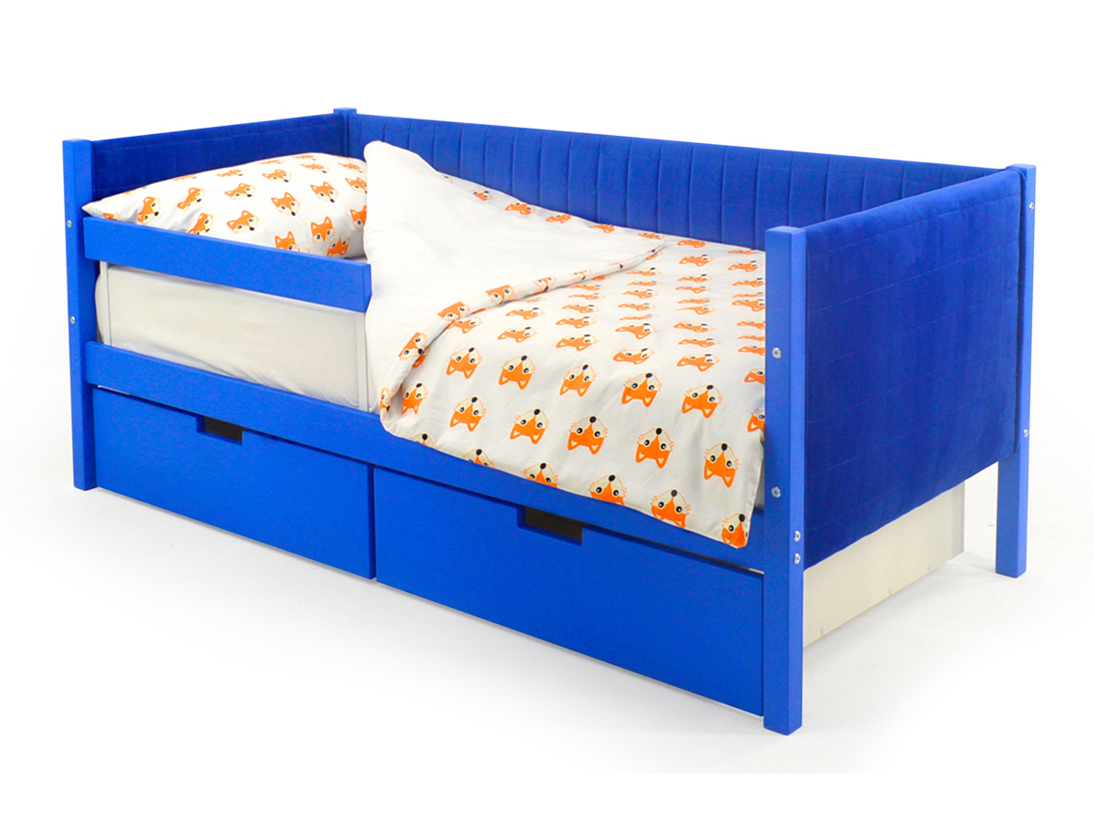 Кровать-тахта мягкая Svogen с ящиками и бортиком синий