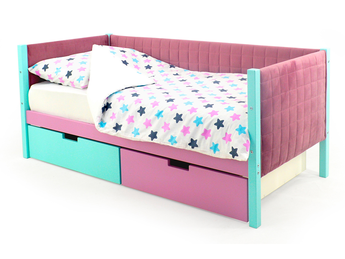 Кровать-тахта мягкая Svogen с ящиками мятный-лаванда
