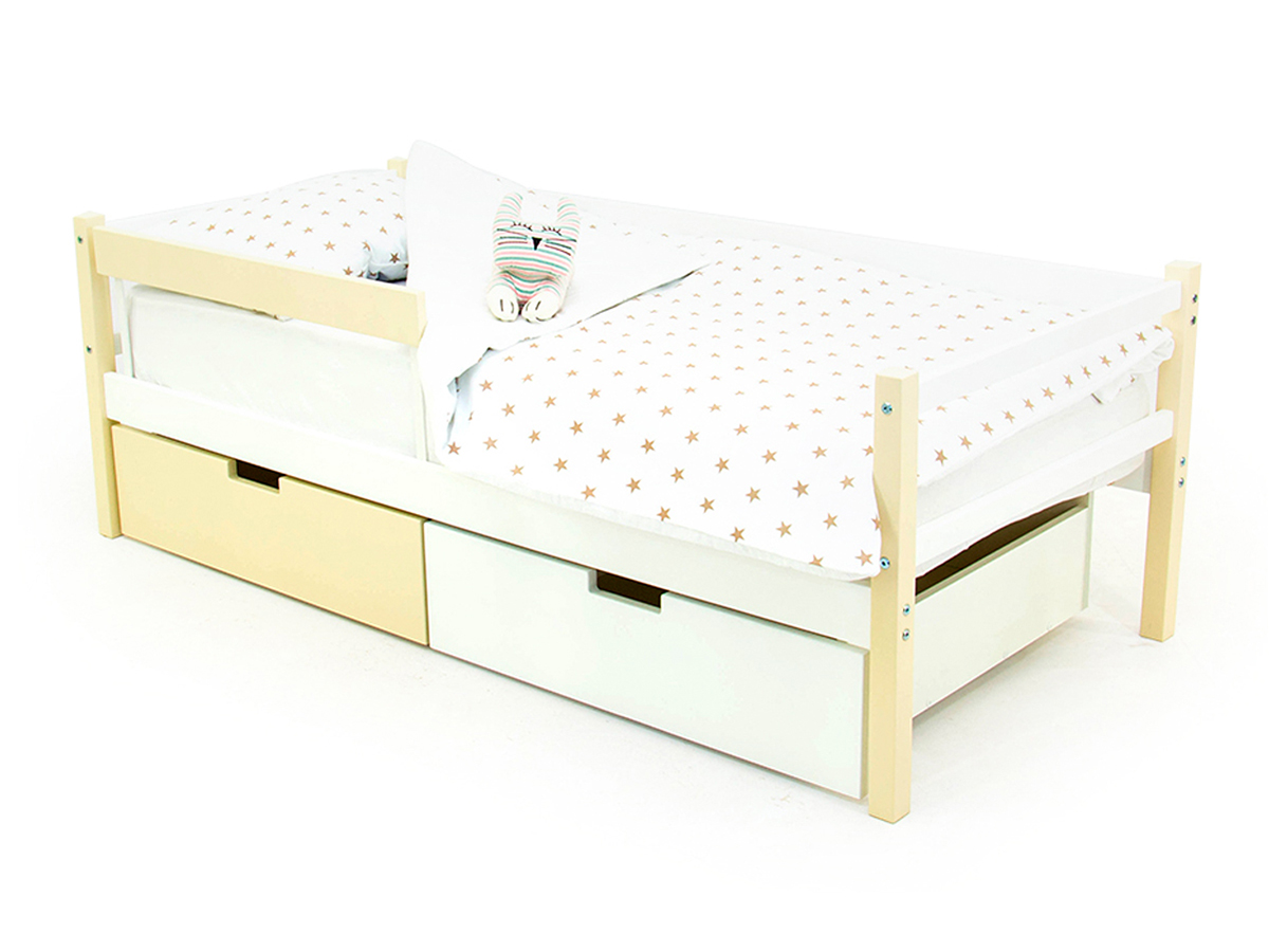 Кровать-тахта Svogen с ящиками и бортиком бежевый-белый
