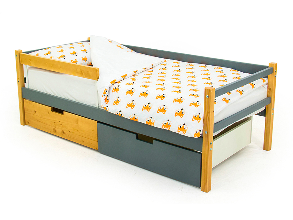 Кровать-тахта Svogen с ящиками и бортиком дерево-графит