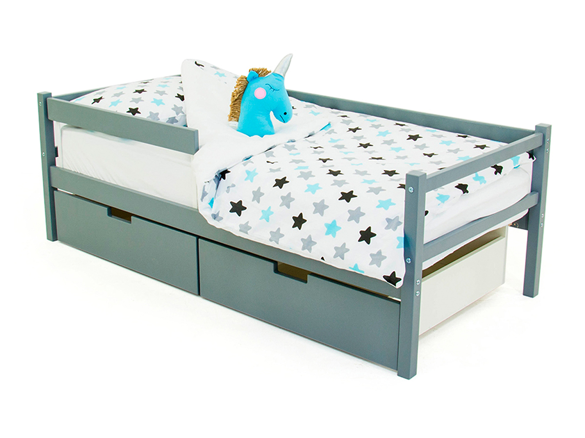Кровать-тахта Svogen с ящиками и бортиком графит