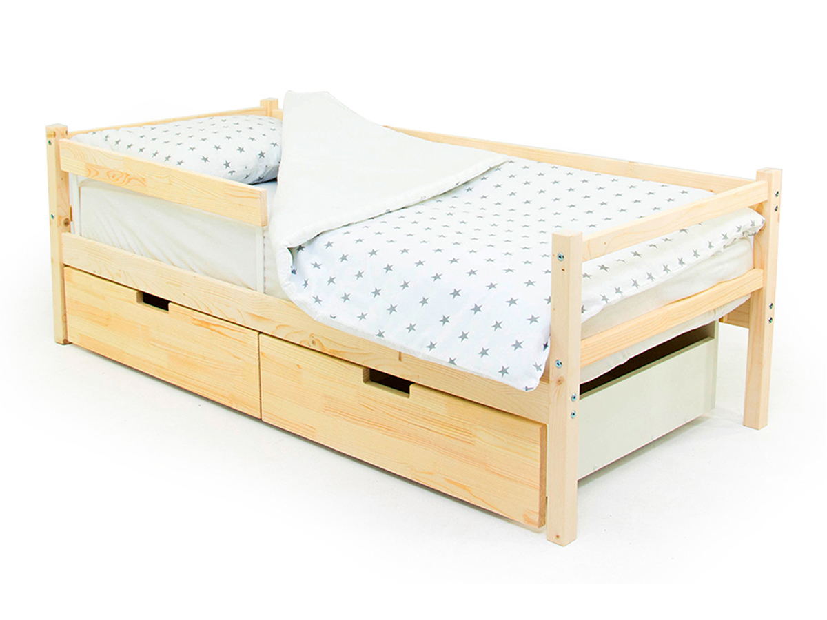 Кровать-тахта Svogen с ящиками и бортиком натура без покрытия