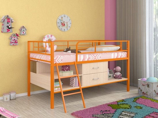 - Кровать-чердак Севилья Мини Я оранж/слоновая кость