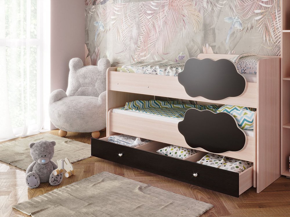 - Кровать Соник с ящиком млечный дуб с венге