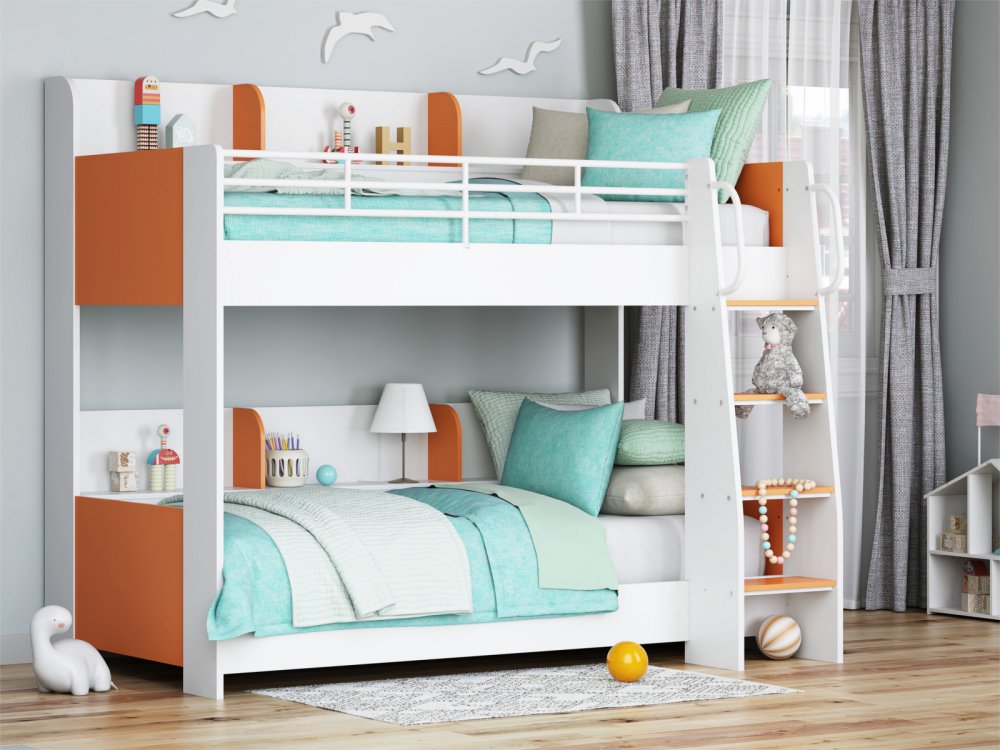 - Кровать Соня 5 правая белый-оранжевый