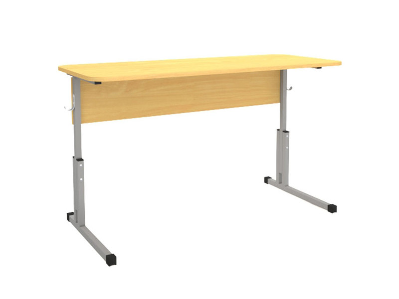 Двухместный ученический стол с закругленными углами, регулируемый по высоте.