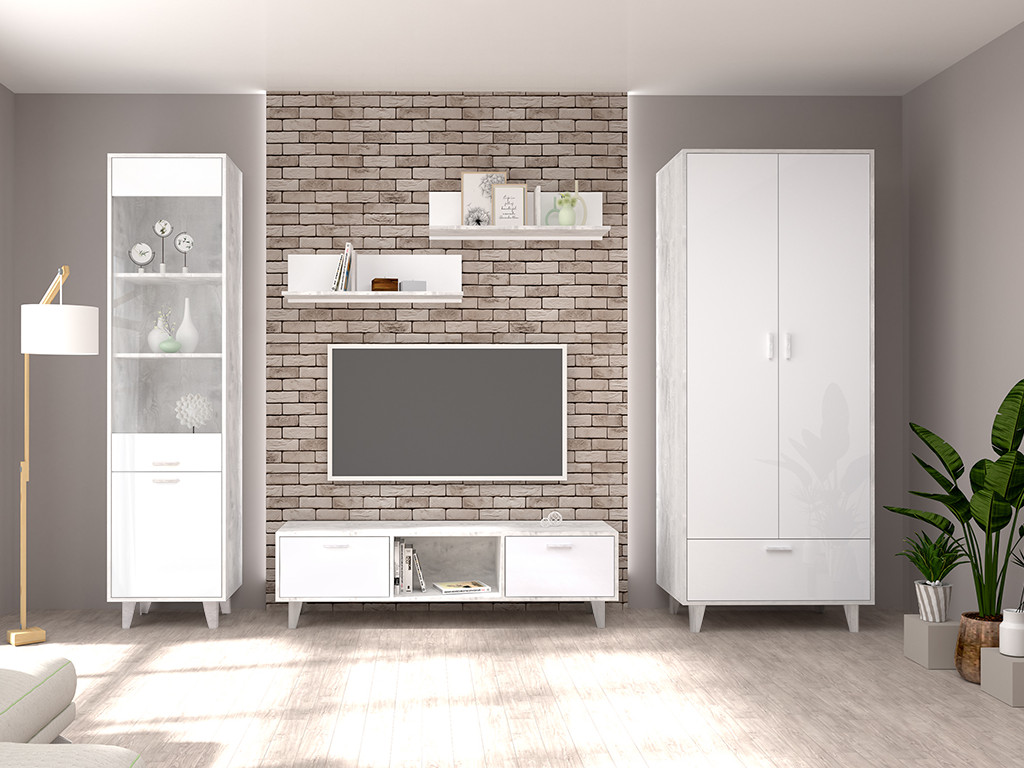 - Гостиная Эго бетон светлый/белый глянец