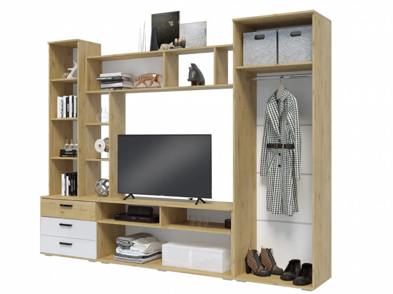 - Гостиная Крокус Дуб Вотан-Белый глянец