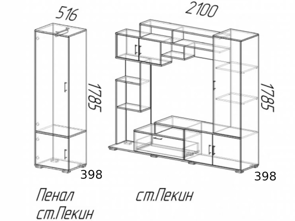 - стенка: 2100 (Ш) Х 1785 (В) Х 400 (Г) мм