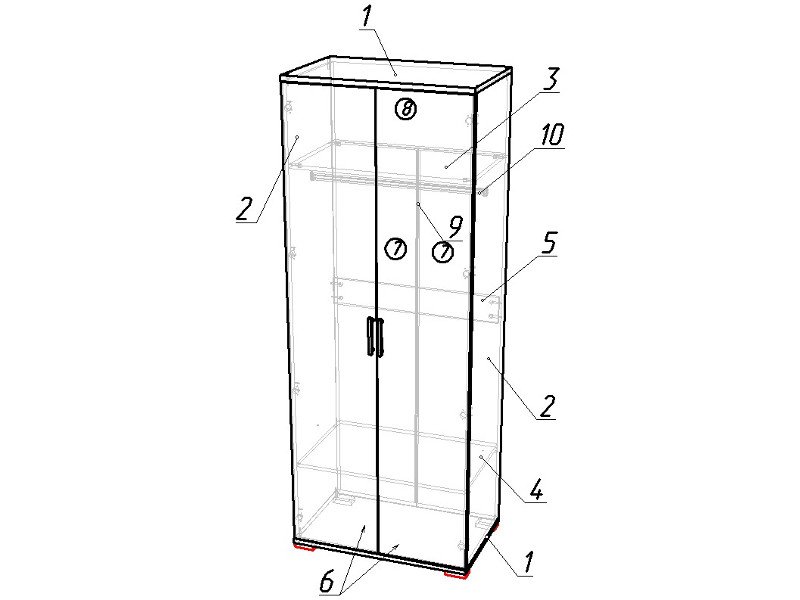 - М01 шкаф двухдверный 510х801х2056h - 21220 руб